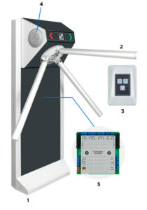 Комплект автономной проходной на базе компактного турникета для организации зоны прохода с автоматическими преграждающими планками «Антипаника». Проход возможен с помощью персональных идентификаторов и/или пульта дистанционного управления.
