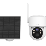 Поворотная Wi-Fi видеокамера с разрешением 4Мп, панорамным обзором, ИК подсветкой и LED диодами, AI-детекцией человека, детекцией звука и функцией патрулирования. Для установки вне помещений. Питание от солнечной панели.