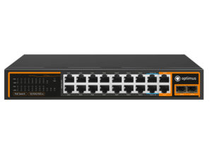 Коммутатор Optimus U1I-16F2b/2G/2S — неуправляемый PoE-коммутатор. Коммутатор оснащен портами 10/100 Мбит/с с поддержкой PoE (технология передачи питания по сетевому кабелю вместе с данными) к каждому из которых можно подключать сетевые устройства (IP-камеры, IP-телефоны, беспроводные точки доступа), а также с функцией Watchdog, она позволяет перезагрузить «зависшее» устройство, подключенное к коммутатору, путем снятия и повторной подачи напряжения.