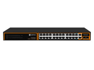 Коммутатор Optimus U1I-24F2b/2G/2S — неуправляемый PoE-коммутатор. Он оснащен 24 портами 10/100 Мбит/с с поддержкой PoE (технология передачи питания по сетевому кабелю вместе с данными) к каждому из которых можно подключать сетевые устройства (IP-камеры, IP-телефоны, беспроводные точки доступа).