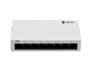 Optimus U1EN-7G/1G — это неуправляемый коммутатор без функции питания PoE. Он оснащен 7 портами10/100/1000 Мбит/с и 1 портом 10/100/1000 Мбит/с RJ-45, Uplink к каждому из которых можно подключать сетевые устройства (IP-камеры, IP-телефоны, беспроводные точки доступа). Блок питания имеет выходное напряжение 12 вольт.